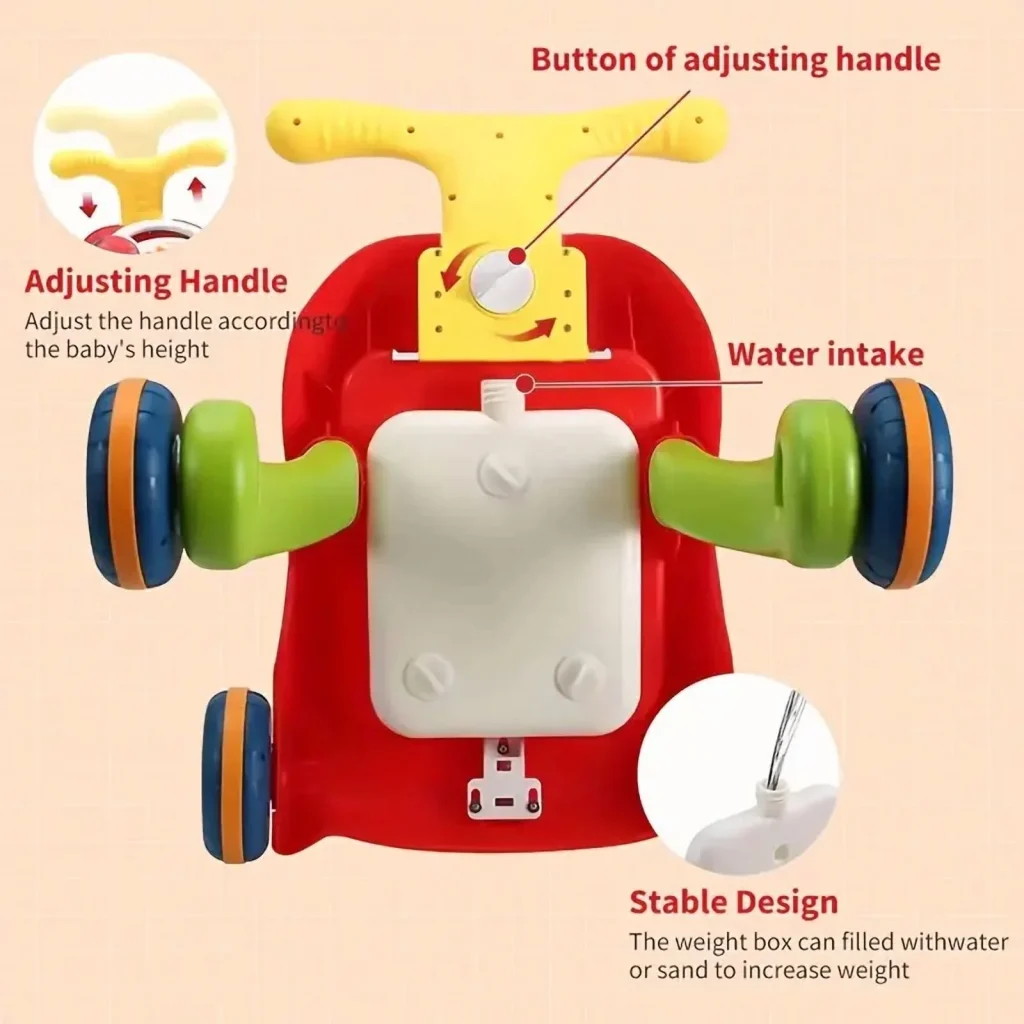 The 2-in-1 Smart Baby Walker + Activity Center combines safety, functionality, and fun for your baby’s first milestones. With a smooth swivel seat, adjustable height, and multi-directional wheels, it adapts as your child grows. The built-in activity center keeps your baby entertained while encouraging cognitive development. Designed to fold compactly for easy storage, it ensures your little one moves confidently, stays engaged, and enjoys endless exploration.