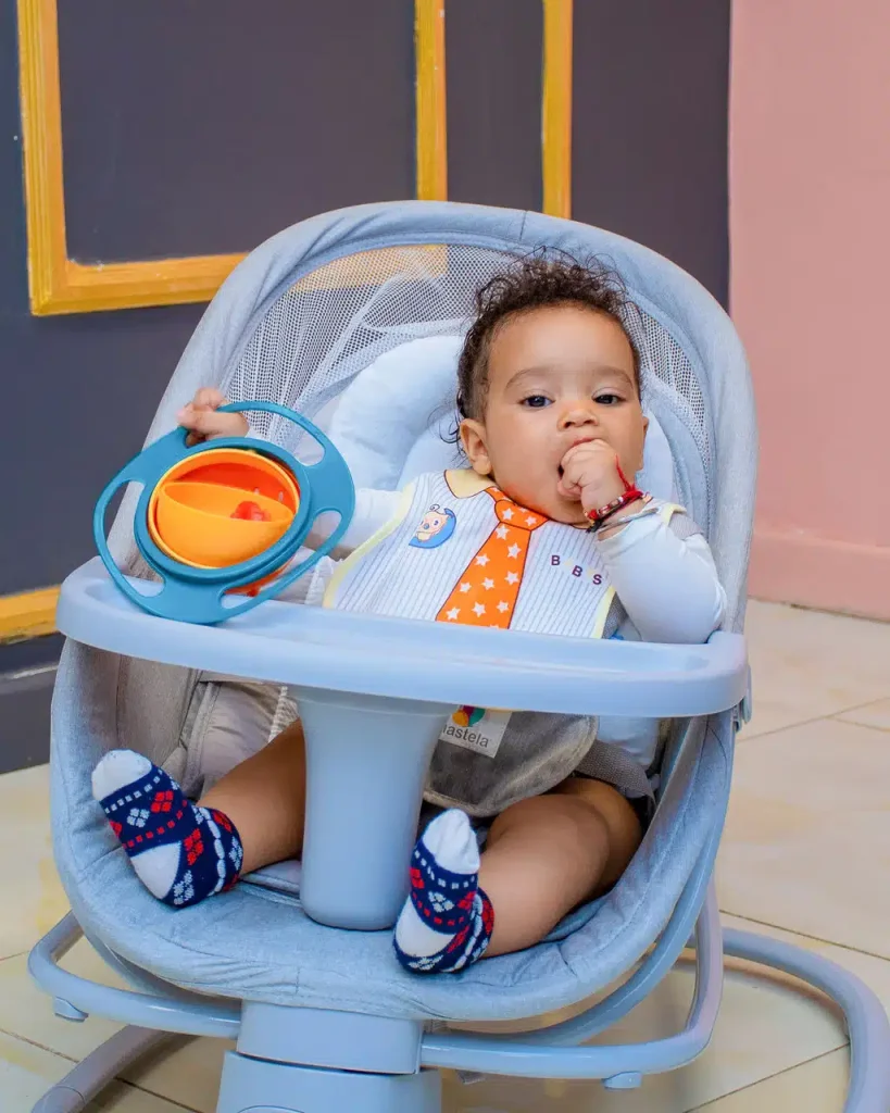 ▶ 3-in-1 Design: Converts from a baby swing to a feeding chair and lounging seat.